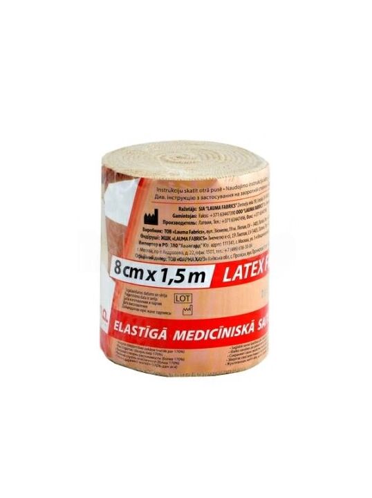 Эластичный медицинский бинт высокой степени растяжимости применяется для профилактики и лечения хронических венозных воспалительных процессов в до- и послеоперационный периоды, для профилактики образования гематом и удержания эндопротезов в стабильном состоянии при пластических операциях, а также для профилактики и лечения травм, связанных со спортом. Специальная технология ткачества, применяемая при производстве бинта, обеспечивает отличное качество и сохранение свойств даже при длительном и интенсивном использовании. Металлический фиксатор позволяет удерживать бинт в нужном месте. Размер бинта 1,5 м х 8 см.