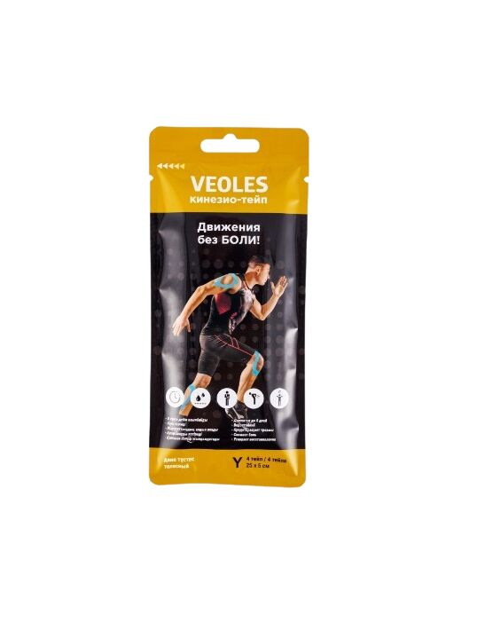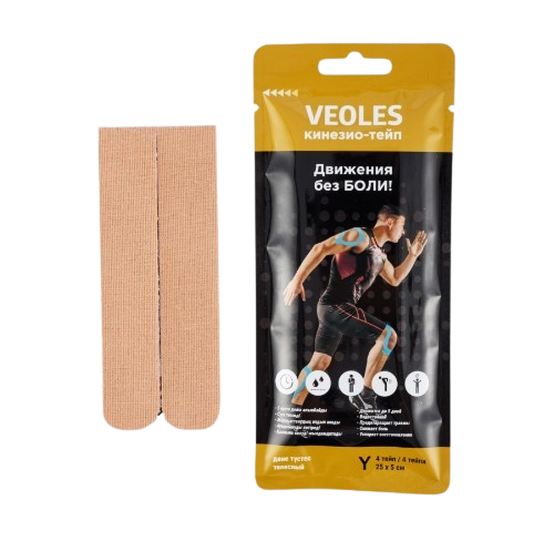 VeolesPlast+ Кинезио-тэйп пластырь 25смх5см №4 вилка Рука/Колено (телесный)