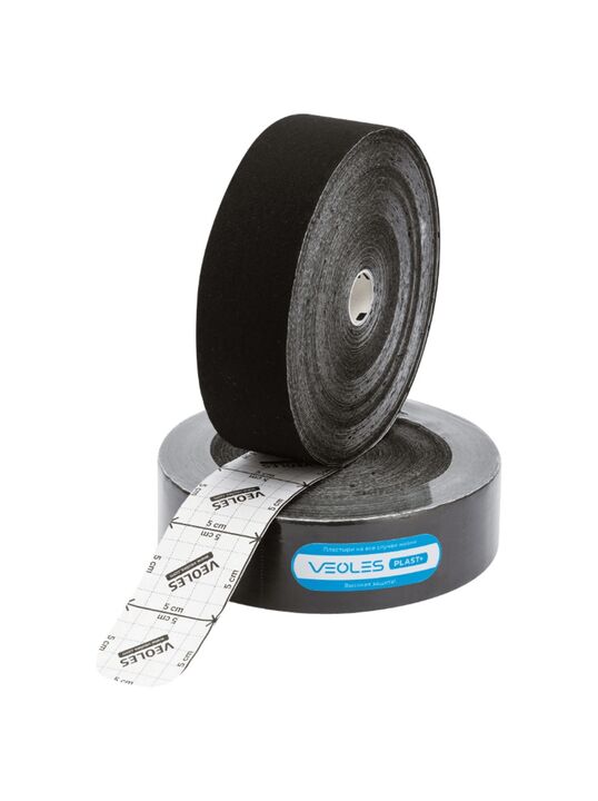 VeolesPlast+ Кинезио-тэйп пластырь 5смх32м рулон (черный) с усил. фиксацией
