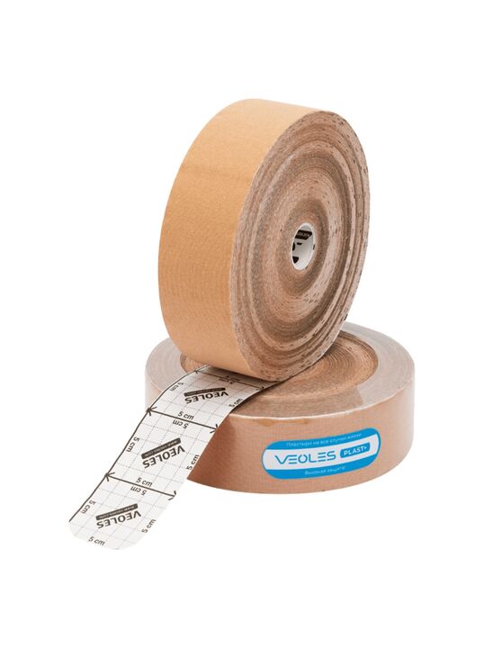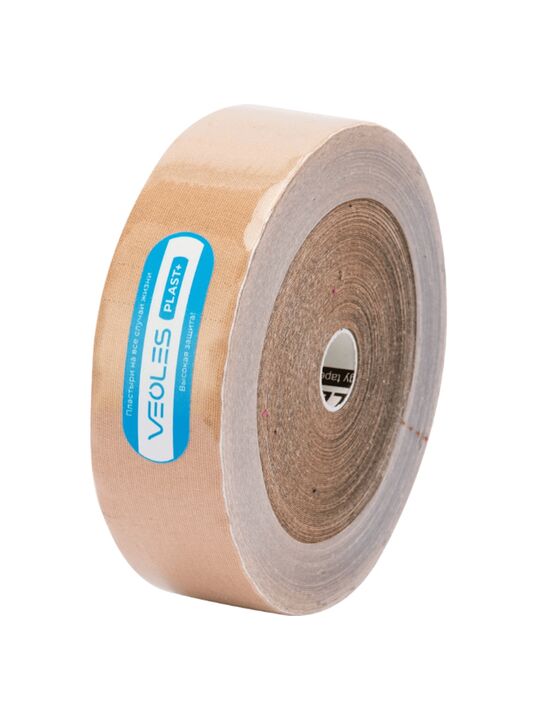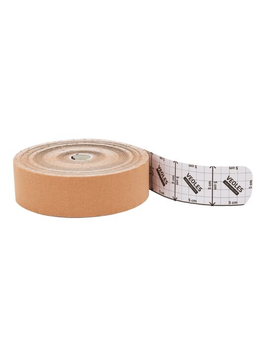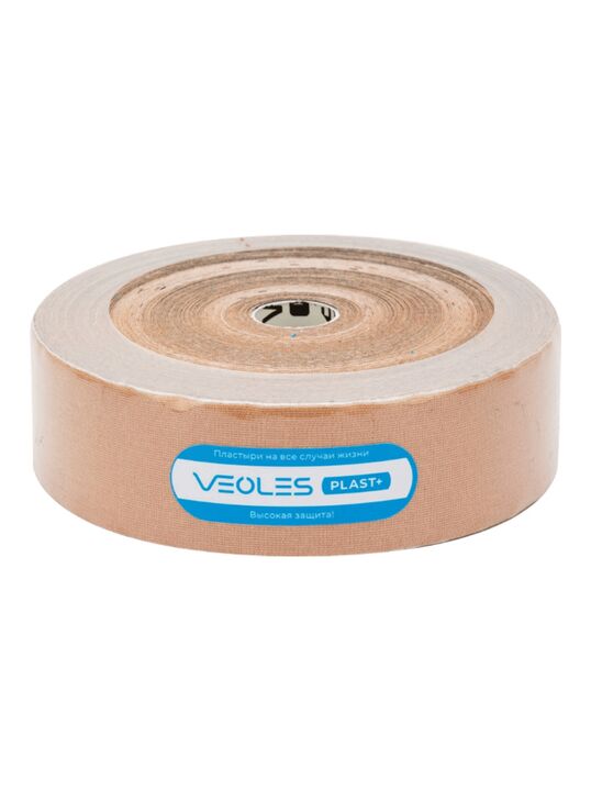 VeolesPlast+ Кинезио-тэйп пластырь 5смх32м рулон (телесный) с усил. фиксацией