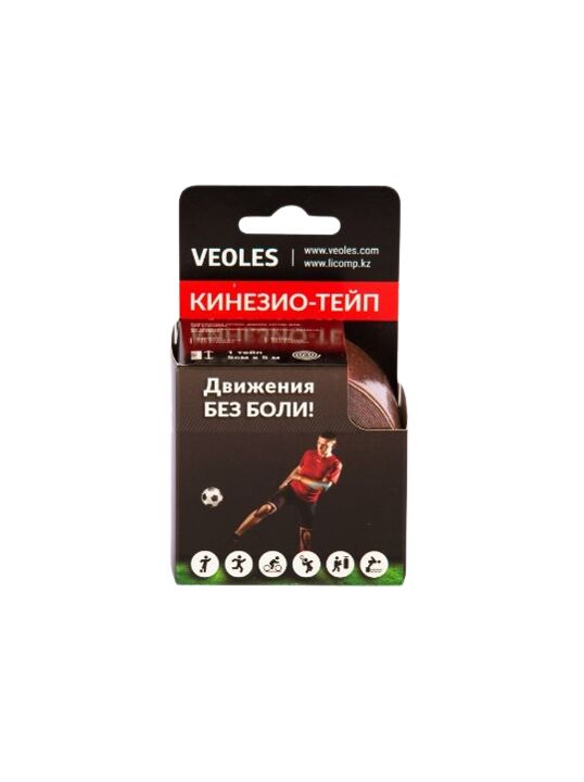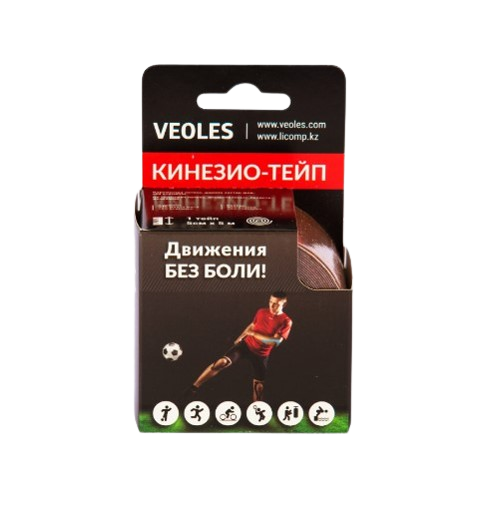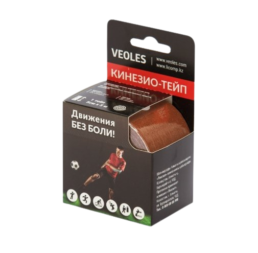 VeolesPlast+ Кинезио-тэйп пластырь 5смх5м рулон (коричн.) с усил. фиксацией