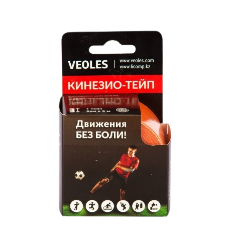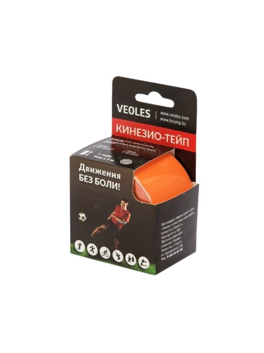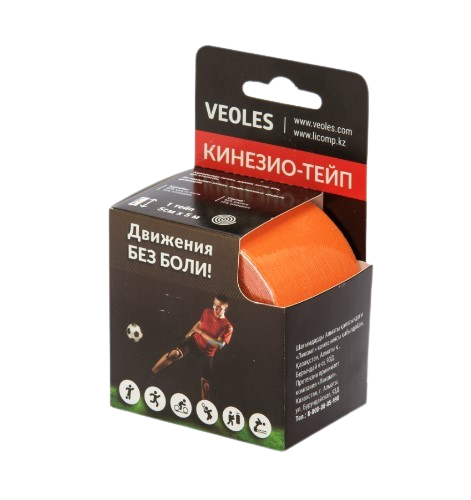 VeolesPlast+ Кинезио-тэйп пластырь 5смх5м рулон (оранж.) с усил. фиксацией