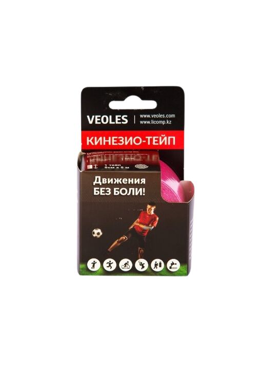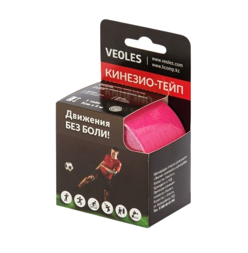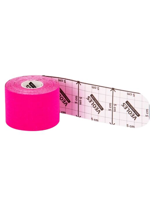 VeolesPlast+ Кинезио-тэйп пластырь 5смх5м рулон (розовый) с усил. фиксацией