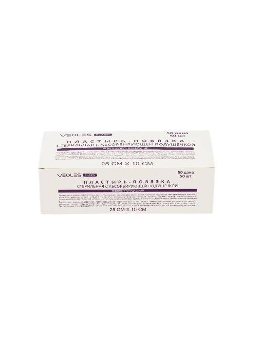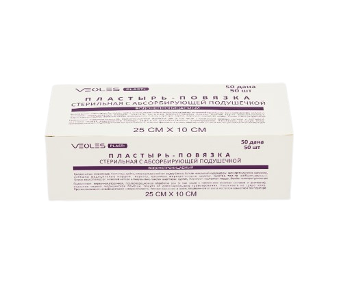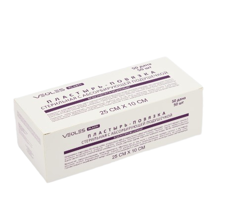 VeolesPlast+ пластырь-повязка 25*10см стер. с адсорбир. подушечкой водонепроницаемый