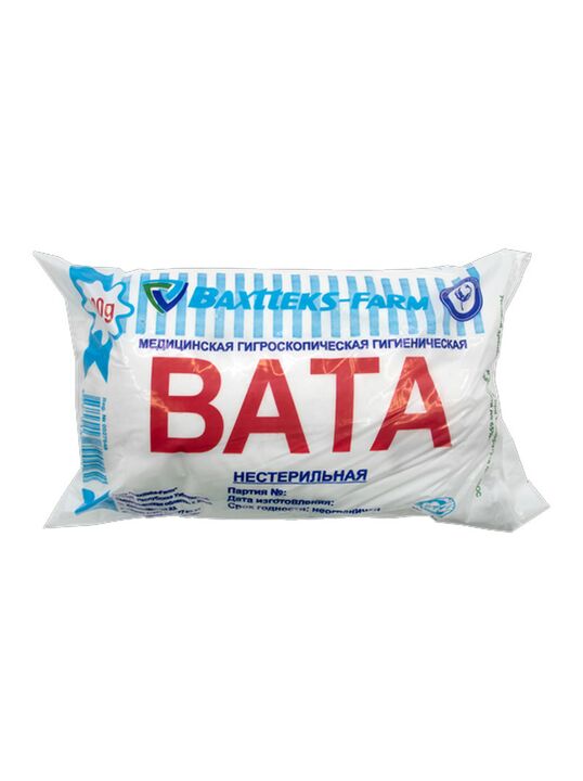 Вата нестерильная 50г.: – рег. номер – 0027647; цифровой код – 4780013790155.