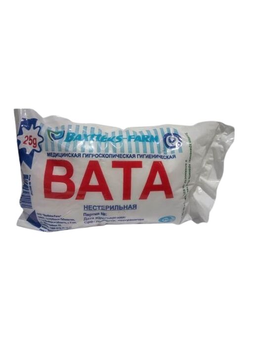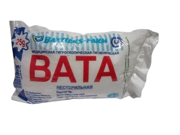 Вата нестерильная 25г.: рег. номер – 0037747; цифровой код – 4780013790582.