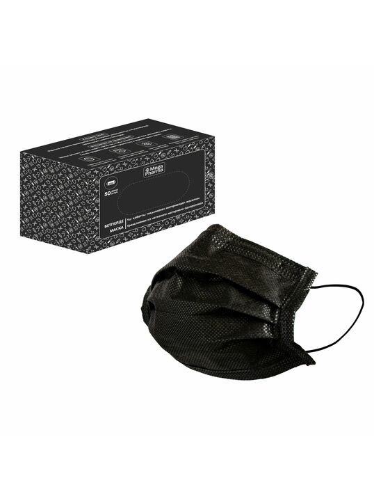 Маска медицинская из нетканого материала одноразовая черная MegaPharma