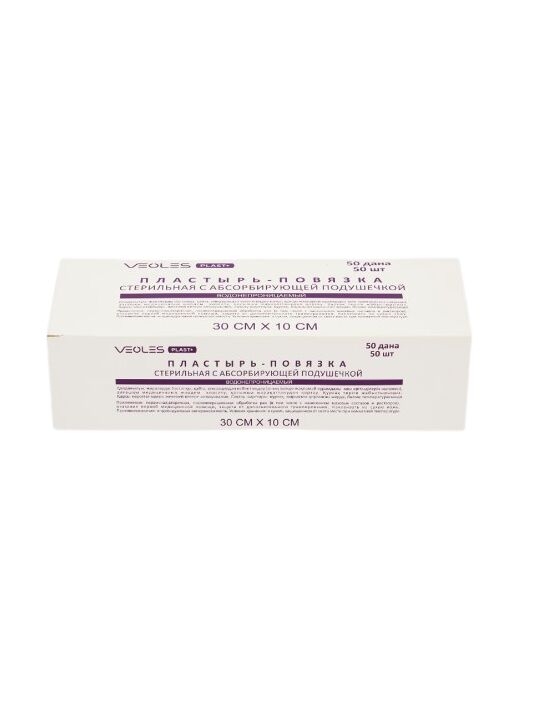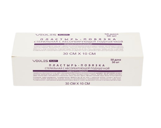 VeolesPlast+ пластырь-повязка 30*10см стер. с адсорбир. подушечкой водонепроницаемый