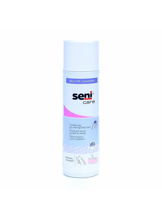 Пенка для мытья и ухода за телом "Seni Care" нежно очищает кожу, оставляя на ее поверхности защитный слой. Снимает раздражение, идеальна для ухода за кожей, особенно подверженной влиянию раздражающих факторов. Заменяет мытье водой и мылом.