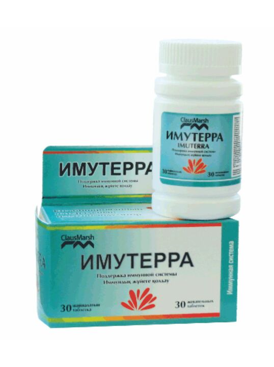 Фармакологические свойства:Имутерра – комплексный иммуномодулятор, содержащий смесь клинически проверенные компоненты, восстанавливающие и регулирующие иммунозащитные функции организма. Арабиногалактан, получаемый из лиственницы, представляет собой полисахарид с высокой молекулярной массой. Arabinogas alactan – природный иммуномодулятор, активирующий ретикулоэндотелиальную систему (РЭС). Арабиногалактан увеличивает образование макрофагов по сравнению с другими растительными иммуностимуляторами почти в 2 раза.Действует на все звенья фагоцитарного процесса, активируя хемотаксис, адгезию, абсорбцию и бактерицидную способность макрофагов. Бета-глюкан — наиболее распространенный в природе неспецифический активатор макрофагов, выделенный из клеточных стенок хлебопекарного растения. Сахаромицеты cerevisiae. Бета-1,3-глюкан захватывается М-клетками слизистой оболочки кишечника и активно транспортируется в подслизистый слой, где активируются макрофаги, а через них и лимфоциты, отвечающие за защиту слизистых оболочек, т. е. за местный иммунитет.Благодаря механизму репопуляции активированные лимфоциты из слизистой кишечника оседают на слизистую оболочку. дыхательных путей и мочеполовых путей, обеспечивая тем самым защиту от инфекций и рака всех слизистых оболочки тела. Бета-глюкан также попадает через воротную вену в печень. 30% массы печени составляют Клетки Купфера, секретирующие цитокины (IL-1, 12 и др.), активирующие системный иммунитет. Таким образом, бета-глюкан мощно активирует как местный иммунитет, защищающий организм от инвазий чужеродного генетического материала, так и системный иммунитет, защита всего организма от уже проникшей инфекции.Астрагал (Astraga/us membranaceus) – лекарственное растение. иммуномодулирующие свойства. Астрагал содержит тритерпеновые сапонины (астрагалозиды), флавоноиды, фитостерины (бета-ситостерин), холин и бетаин. Корень Астрагал оказывает следующее действие: повышает неспецифический гуморальный и клеточный иммунитет, повышает активность естественных клеток-киллеров, стимулирует образование интерферона и лейкоцитарные иммунные факторы. Его иммуномодулирующий эффект сравним с действием иммуноглобулинов. Кроме того, астрагал предотвращает снижение иммунитета при химиотерапии.Гриб Майтаке (Грифола кудрявая) оказывает иммуномодулирующее действие. Лечебный эффект грифола вьющегося обусловлен высоким содержанием полисахаридов (Д-фракция и грифолан). Исследование гриба майтаке у больных раком показало значительную стимуляцию. иммунных клеток, таких как клетки NK 1U1 (естественные клетки-киллеры), которые обладают цитотоксичностью в отношении инфицированных вирусом клеток и ингибируют их рост и дегенерацию.Гриб майтаке активирует макрофаги, стимулирует активность Т-лимфоцитов, усиливает синтез интерферона, который подавляет рост и развитие различных типов вирусов. Благодаря противоопухолевой активности d-фракции, Гриб майтаке предотвращает переход доброкачественного заболевания в злокачественное, а также значительно снижает скорость метастазирования.Листья стевии состоят из дитерпеновых гликозидов, 17 аминокислот (лизин, метионин, глицин и др.), каротиноидов, витаминов. В1, В2, С, Е, О, полиненасыщенные жирные кислоты, флавоноиды (рутин, кверцетин и др.), алкалоиды, сапонины, эфирные масла, д