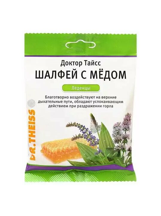 сахар, сироп глюкозы, мед, вода(растворитель), экстракт шалфея, аскорбиновая кислота, регулятор кислотности – лимонная кислота, травяной экстракт (аромаэкстракты корней солодки, листьев подорожника, травы тысячелистника, листьев шалфея, травы медуницы, цветков бузины, цветков мальвы, цветков ромашки, семян фенхеля, корней алтея, аниса, листьев мяты перечной, листьев эвкалипта), натуральный ароматизатор (шалфей).