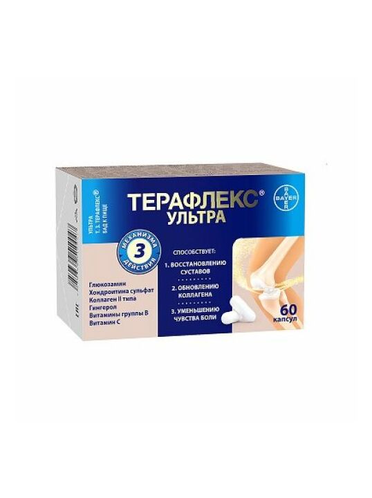 Ультра т. з. Терафлекс® БАД к пище – это комбинация хондропротекторов хондроитина и глюкозамина – важнейших структурных компонентов хрящевой ткани суставов, усиленная следующими ингредиентами: