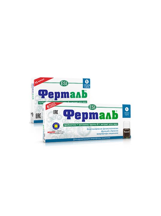 Входящие в состав Ферталя® лакто–и бифидобактерии восстанавливают естественное микробное равновесие в кишечнике, регулируют работу желудочно-кишечного тракта, нормализуют синтез витамина Е и К, поддерживают естественную защиту организма от вирусов и бактерий, создают благоприятные условия для роста и размножения «полезных» микроорганизмов, от работы которых зависит 70% иммунной защиты.