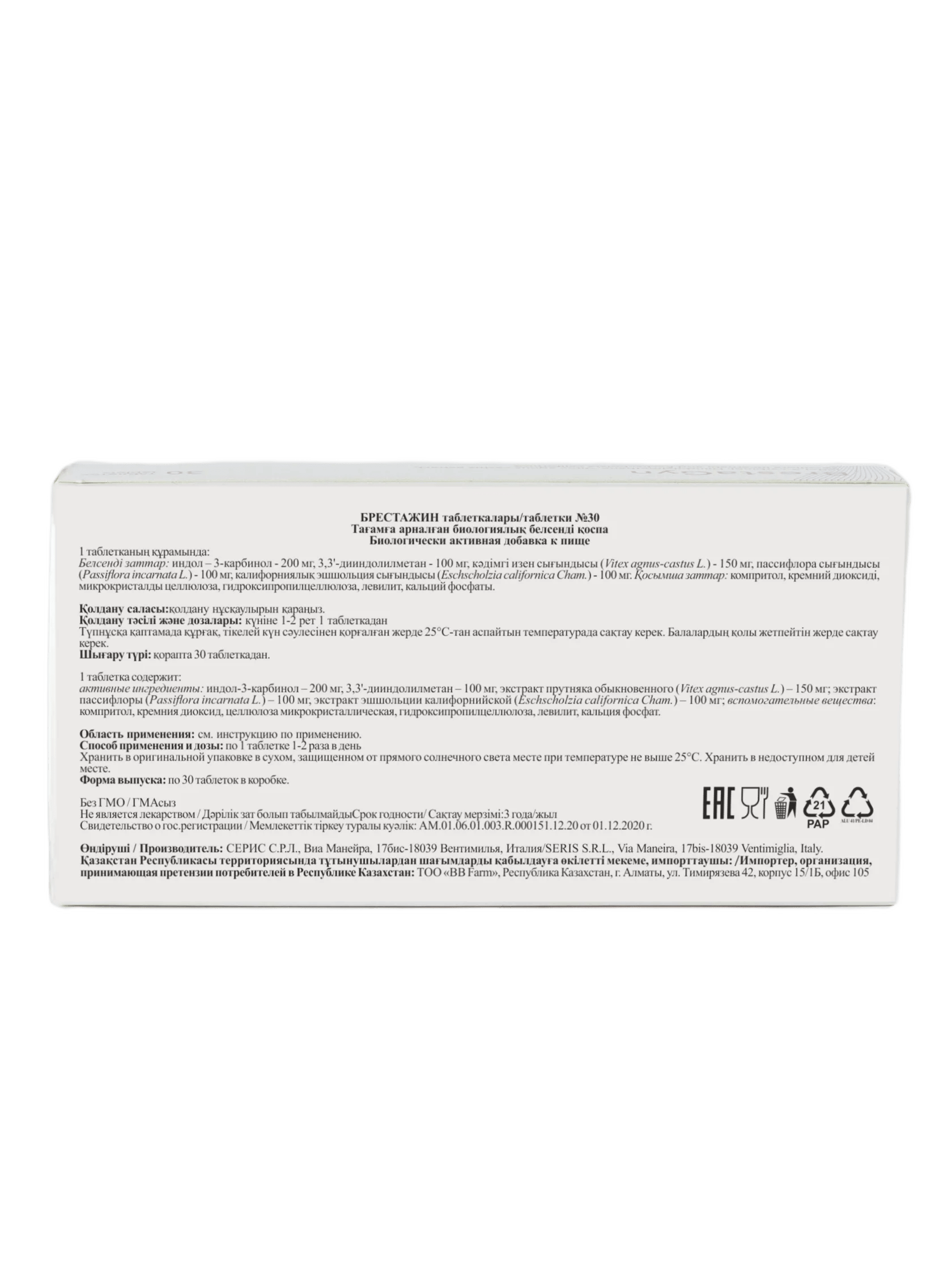 БРЕСТАЖИН – диетическая добавка для применения в гинекологической практике. БРЕСТАЖИН рекомендован как дополнительный источник биологично активных веществ для нормализации функционального состояния и предотвращения развития гиперпластических процессов в молочных железах и репродуктивных органах женщины.