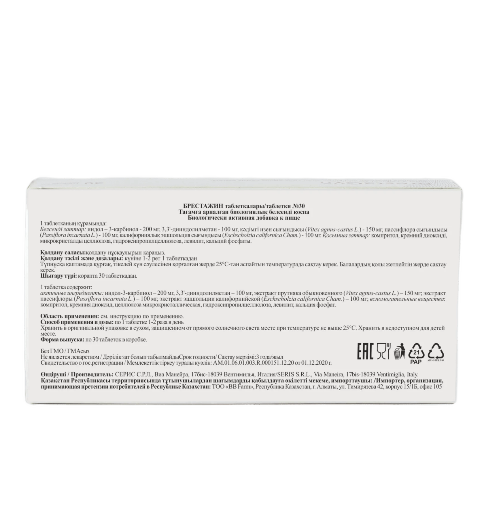 БРЕСТАЖИН – диетическая добавка для применения в гинекологической практике. БРЕСТАЖИН рекомендован как дополнительный источник биологично активных веществ для нормализации функционального состояния и предотвращения развития гиперпластических процессов в молочных железах и репродуктивных органах женщины.