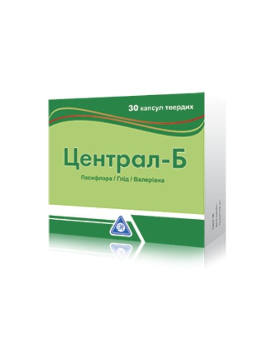 Фармакодинамика: Централ Б – комбинированный фитопрепарат, обладающий седативным действием. В его состав входят три компонента – сухие водно-спиртовые экстракты лекарственных растений: пассифлоры, боярышника и валерианы. Экстракт пассифлоры содержит алкалоиды и флавоноид - витексин, обладает мягким успокоительным действием на центральную нервную систему, способствует восстановлению сна, уменьшает беспокойство и нервозность, обладает спазмолитическим действием на гладкие мышцы, улучшает работу сердца, оказывает седативное действие. Экстракт боярышника содержит флавоноиды, холин, ацетилхолин, дубильные вещества, фитосерины и т.д. Благодаря наличию тритерпеновых соединений и флавоноидов оказывает спазмолитическое действие, избирательно расширяя сосуды сердца и головного мозга; гипотензивное действие; способствует нормализации венозного давления, улучшает функции сосудистых стенок. Обладает мягким седативным действием. Экстракт валерианы содержит эфирное масло, основным компонентом которого является сложный эфир борнеола и изовалериановой кислоты, а также свободную валериановую кислоту и борнеол, органические кислоты (в том числе валериановую кислоту, оказывающую спазмолитическое действие), алкалоиды (валерин и хатинин), дубильные вещества, сахара и другие биологически активные вещества. Обладает седативным действием, уменьшает напряженность и раздражительность, характерные для психического переутомления и неврастении. Оказывает спазмолитическое действие.