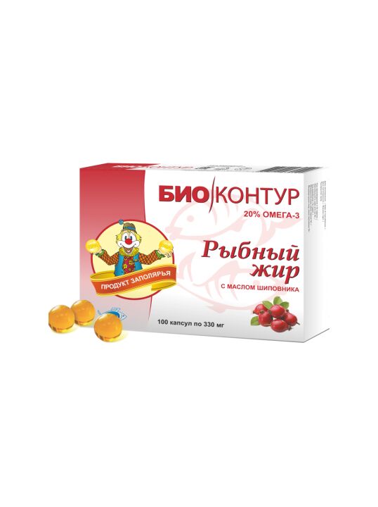 Рыбный жир "БиоКонтур" с маслом шиповника — натуральный источник Омега-3 кислот для вашего здоровья.