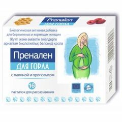 Пренален для горла №16 пастилки для рассасывания. Содержание активных ингредиентов и витаминов (% рекомендуемой суточной потребности, согласно нормам Европейского союза)    ...