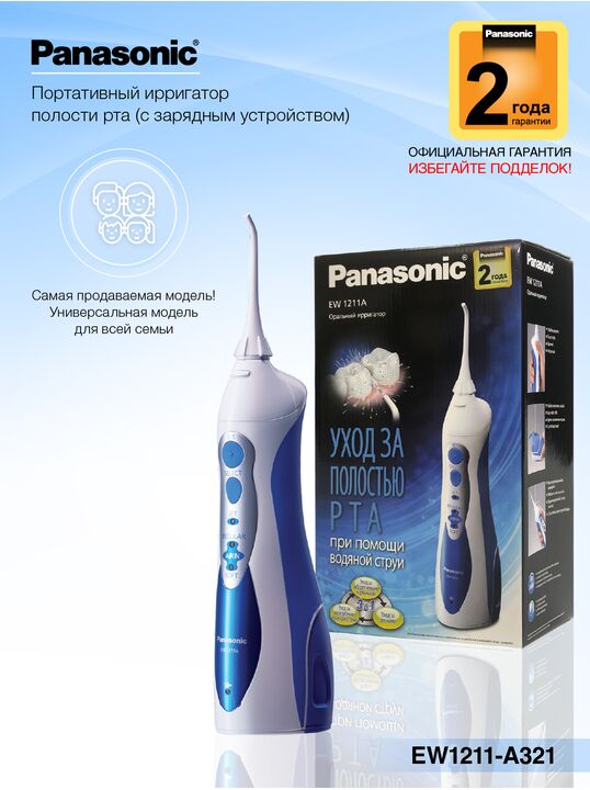 Ирригатор Panasonic EW1211А321 производится много лет и зарекомендовал себя как самая надежная модель. В ирригаторе используется уникальная технология “двойного насоса”. Струя жидкости не только лучше насыщается пузырьками воздуха, чем в других моделях ирригаторов, но и пульсирует с большой частотой - 1400 пульсаций в минуту.