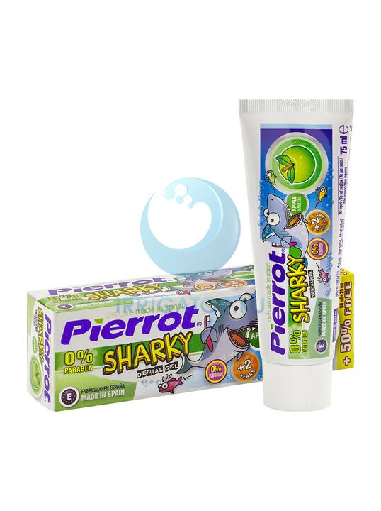 Pierrot Зубной гель Sharky со вкусом яблока, 75 мл обеспечивает идеальный ежедневный уход за полостью рта детей.