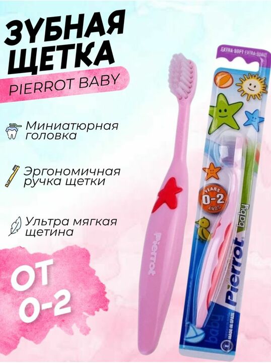 Для чистки первых зубов с 3-х месяцев. Промыть кипятком перед использованием. Нанесите пасту на цветную зону. Держать детскую щетку мы рекомендуем как шариковую ручку. Нащупайте боковые зубы указательным пальцем, а затем переместите на зуб рабочую часть щетки и круговыми движениями очистите жевательную поверхность.