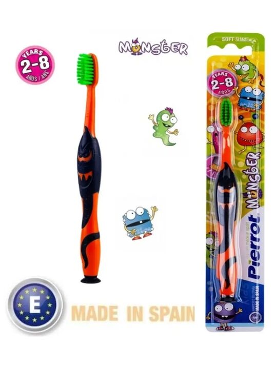 Для чистки первых зубов. Промыть кипятком перед использованием. Нанесите пасту на цветную зону. Держать детскую щетку мы рекомендуем как шариковую ручку. Нащупайте боковые зубы указательным пальцем, а затем переместите на зуб рабочую часть щетки и круговыми движениями очистите жевательную поверхность.