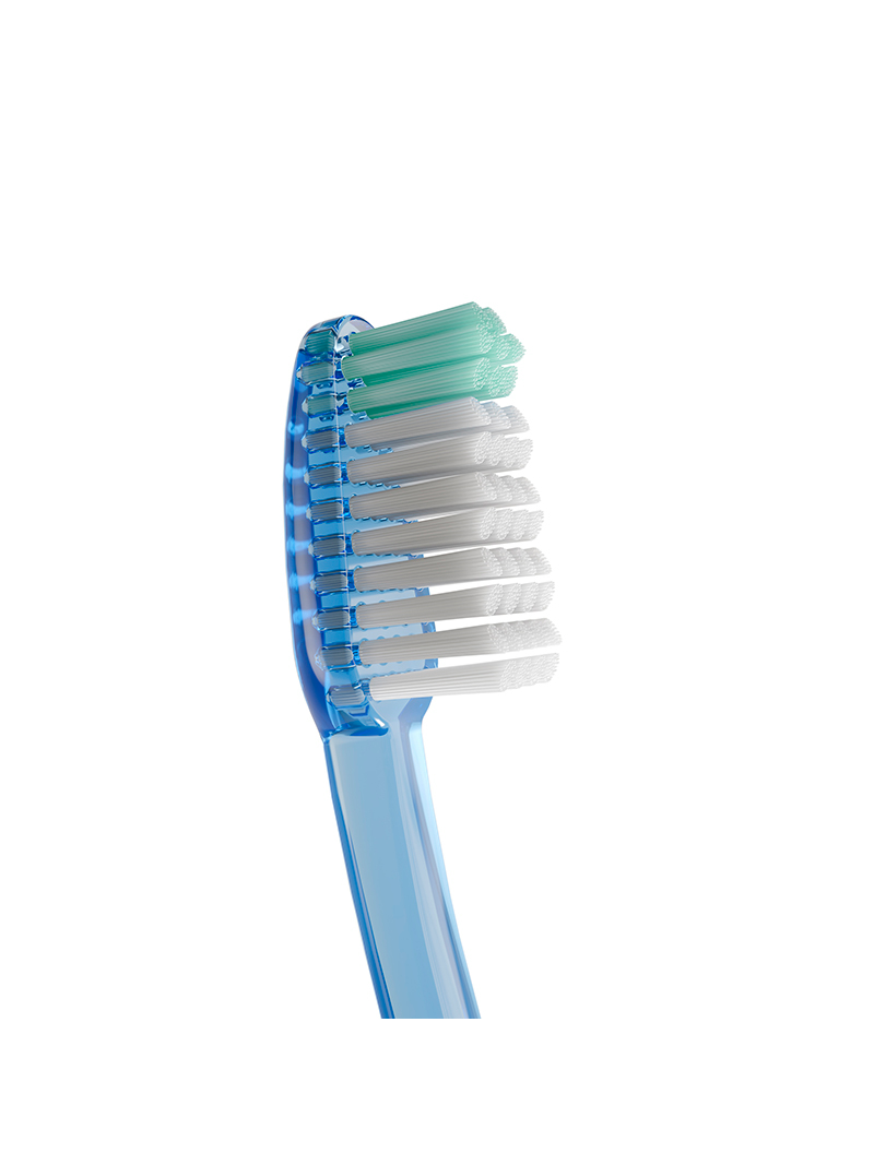 Зубная щетка VITIS® soft оснащена мягкими отполированными закругленными щетинками, которые эффективно удаляют бактериальный налет (биопленку полости рта).