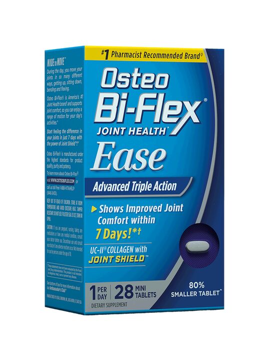 Остео Би-Флекс EASY (Мини) – инновационный продукт, содержащий неденатурированный коллаген II типа – UC II, витамин D3 – 100% от суточной нормы потребления, а также запатентованную смесь 5-LOXIN Advanced (экстракт босвеллии). Состав продукта снижает интенсивность симптомов ревматоидного артрита уменьшая болевые ощущения и уровень воспаления. Уменьшенный объем таблетки (80%) позволяет рекомендовать продукт потребителям стремящимся к максимальному комфорту.