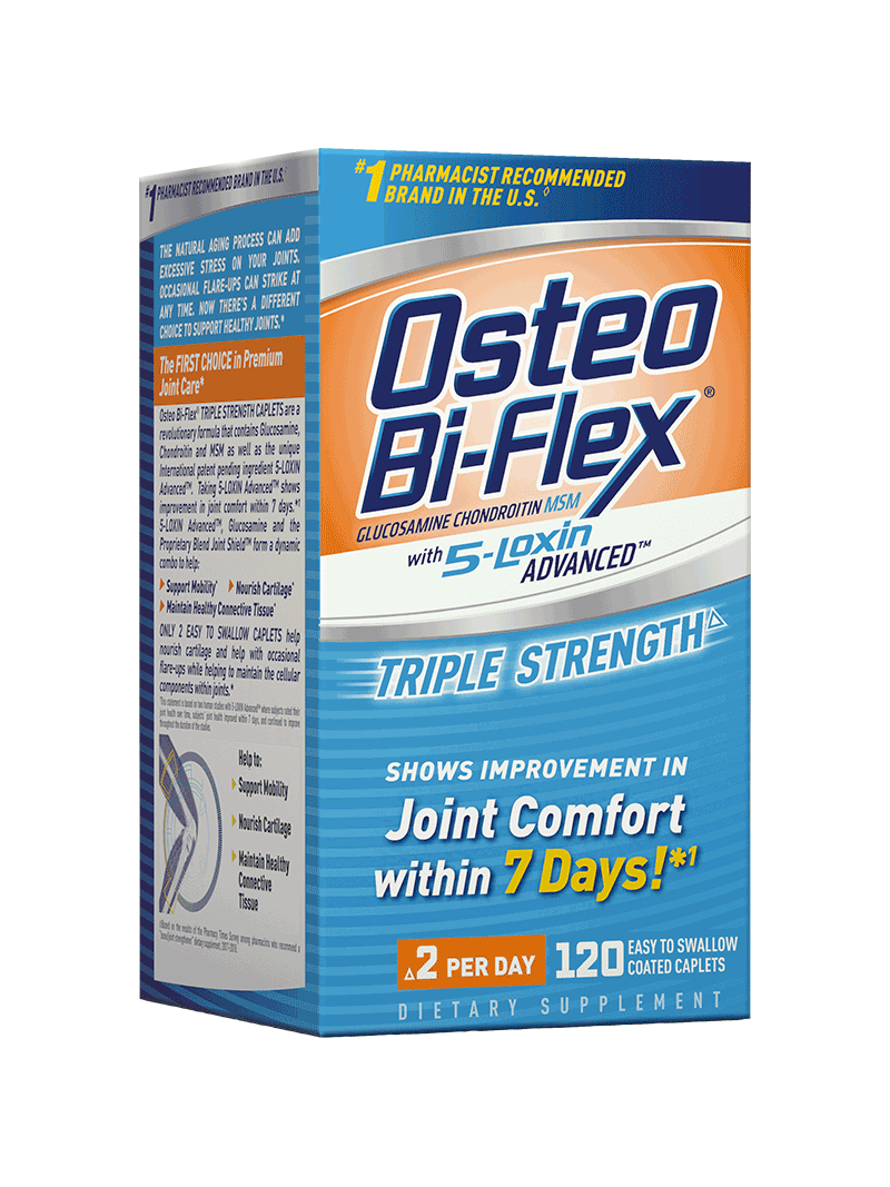 Остео Би-Флекс Тройная сила – это комплексный инновационный хондропротектор, позволяющий улучшить подвижность и гибкость суставов  уже через 7 дней приема. В состав УНИКАЛЬНОГО продукта, кроме Глюкозамина – входит запатентованная смесь Joint Shield (Коллаген, 5-локсин, ГК, MSM, ХС), а также витамин С и минералы - марганец, бор. Каждый компонент OBF дополняет и усиливает действие другого и позволяет в комплексе повлиять на уменьшение боли и воспаления, оказать дополнительное питание суставам, а также улучшить качество жизни.
