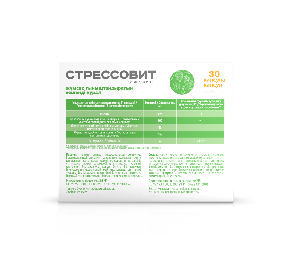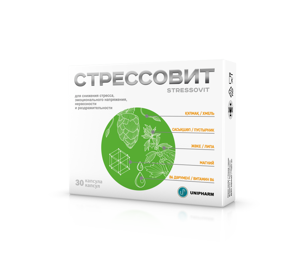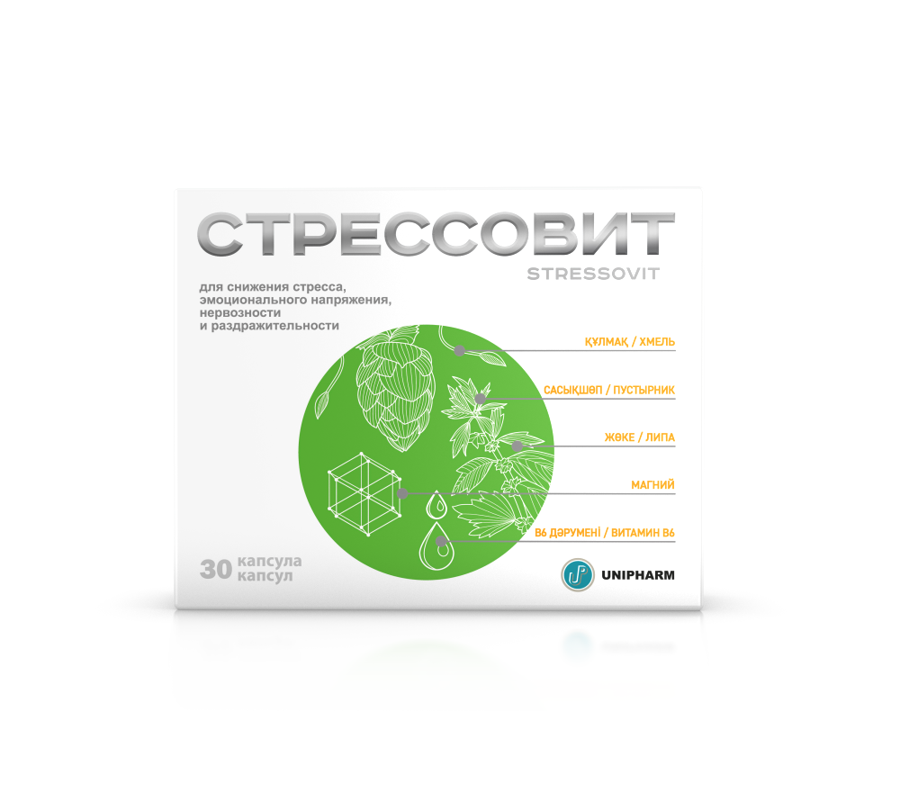 СТРЕССОВИТ – комплекс растительных экстрактов, витамина В6 и магния, обладающий мягким успокоительным действием.