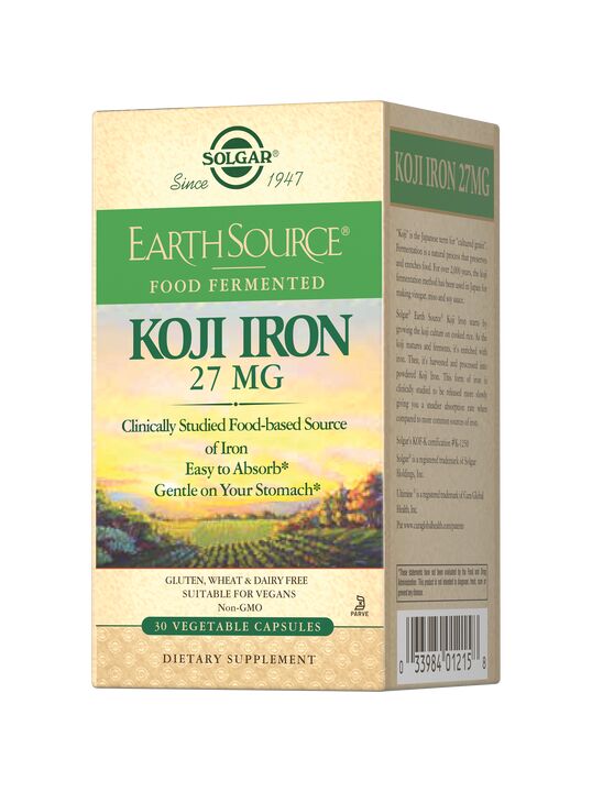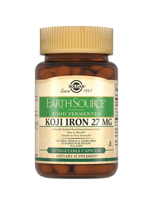 Культура Коджи тесно связана с японской культурой на протяжении более 2000 лет данная технология используется в производстве уксуса, соевого соуса и мисо. Коджи - японский термин, означающий «культивируемое зерно» из закваски, выращенной на рисе. Железо 27 мг в ферментированной культуре Коджи - инновация от Solgar, высокобиодоступная форма железа с замедленным высвобождением. Продукт получают путем введения железа в ферментированную среду Коджи. По мере созревания и брожения среды, минерал вводится в культуру и сохраняется в ней. Благодаря ферментированной среде железо приобретает форму замедленного высвобождения, безопасную для желудка. Железо в ферментированной культуре Коджи имеет постоянную скорость всасывания в кровоток по сравнению с наиболее часто используемыми дополнительными источниками элементарного железа. Железо относится к незаменимым микроэлементам необходимым для нормальной жизнедеятельности человека. При недостатке железа нарушается синтез гемоглобина, который выполняет важнейшую функцию в теле человека - транспорт кислорода к клеткам. Прием один раз в день «Железо 27 мг в ферментированной культуре Коджи» поддерживает функции иммунной системы, энергетический баланс, снижает усталость и утомляемость, а также способствует улучшению когнитивных функций.