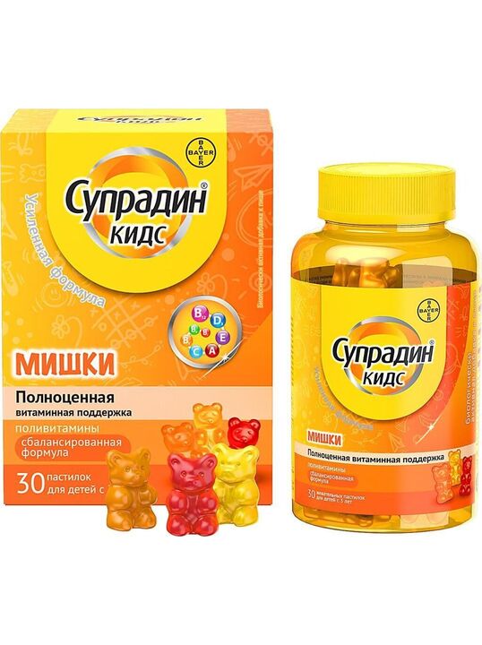 Супрадин Кидс Мишки способствует гармоничному физическому развитию ребенка за счет сбалансированного состава витаминов.