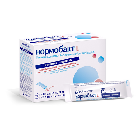 Нормобакт L – это сочетание пробиотика (живые молочнокислые бактерии Lactobacillus rhamnosus GG) и пребиотика (фруктоолигосахариды), которое продлевает период жизни «полезных» бактерий и значительно увеличивает их количество в кишечнике; восстанавливает иммунную устойчивость организма.