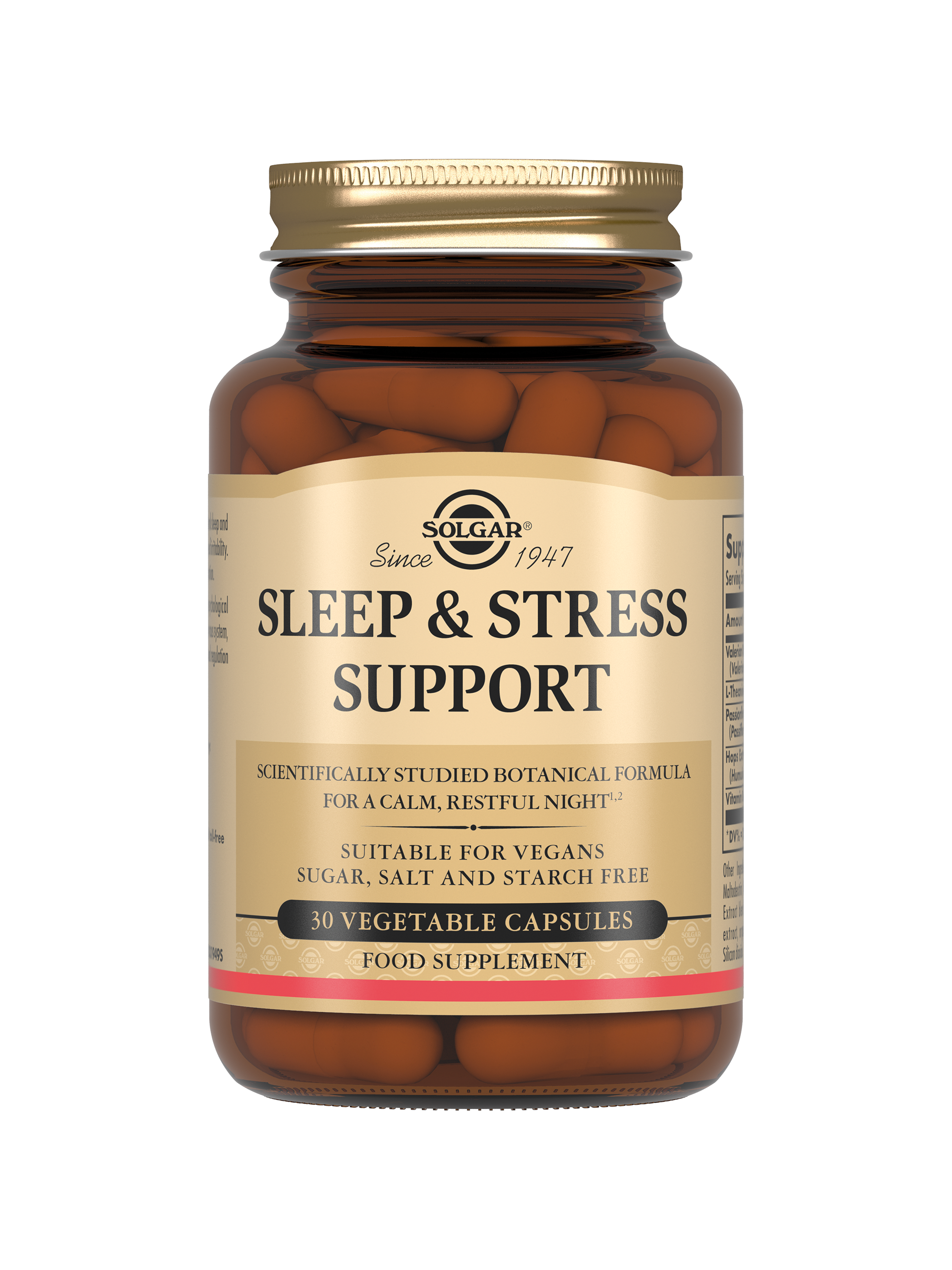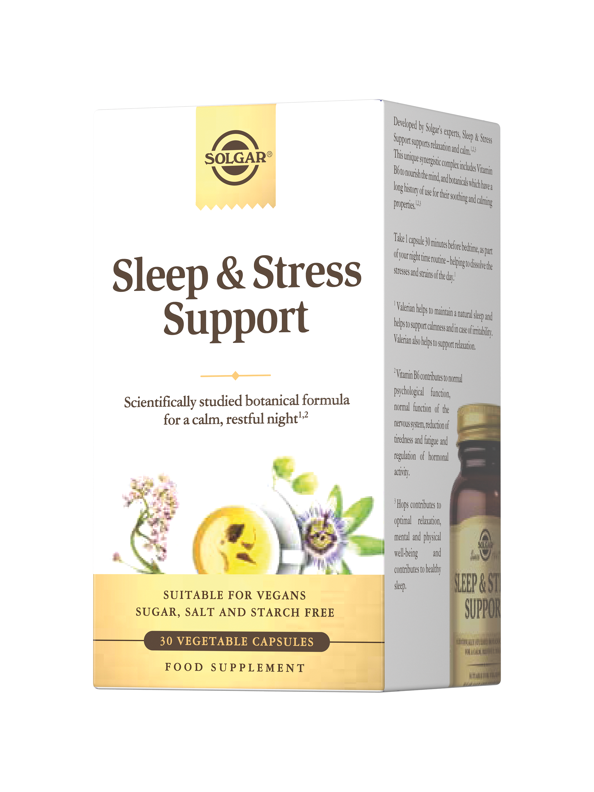 Разработанный экспертами Solgar уникальный ночной комплекс без мелатонина на растительной основе, для защиты от стресса и улучшения качества сна, содержит клинически изученную растительную смесь трав, витамин B6 и аминокислоту L-теанин в биодоступной форме.