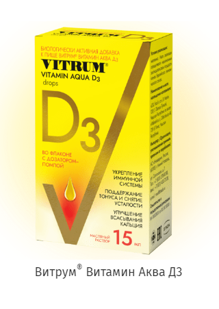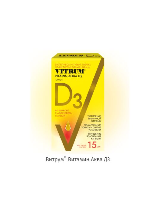 Торговое название: БИОЛОГИЧЕСКИ АКТИВНАЯ ДОБАВКА К ПИЩЕ ВИТРУМ® ВИТАМИН АКВА Д3 VITRUM® VITAMIN AQUA D3