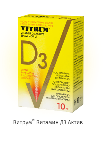 БИОЛОГИЧЕСКИ АКТИВНАЯ ДОБАВКА К ПИЩЕ D3 ВИТРУМ ВИТАМИН Д3 АКТИВ VITRUM VITAMIN D3 ACTIVE spray
