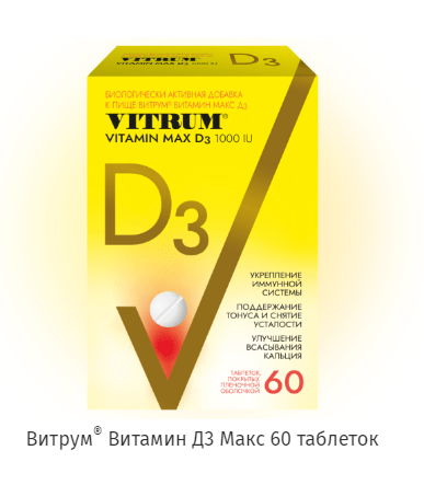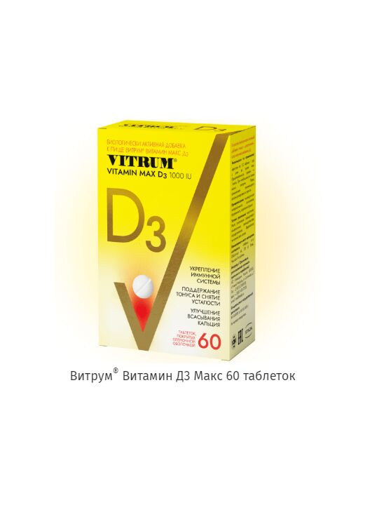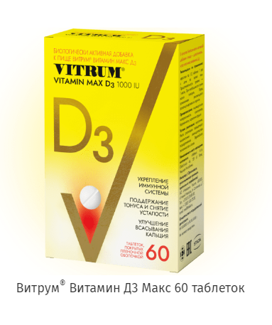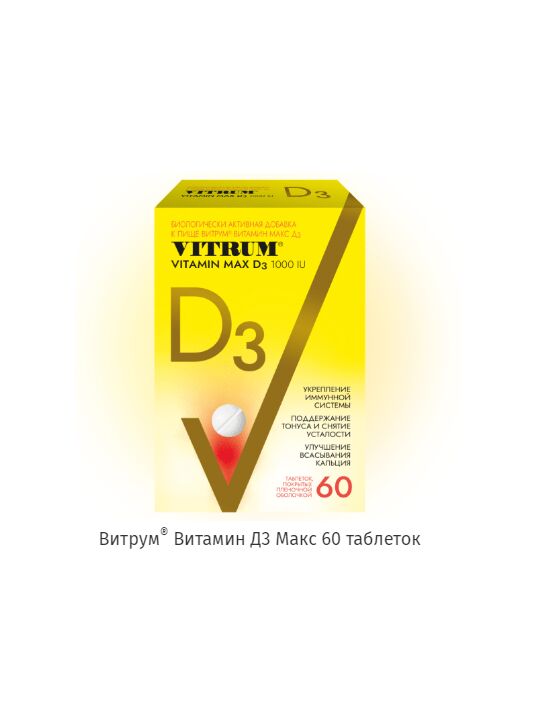 БИОЛОГИЧЕСКИ АКТИВНАЯ ДОБАВКА К ПИЩЕ D3 ВИТРУМ ВИТАМИН Д3 МАКС VITRUM VITAMIN D3 MAX