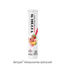 ВИТРУМ ИММУНАКТИВ ШИПУЧИЙ. Форма выпуска : таблетки массой 3,8 г. 20 таблеток. Состав: декстроза, регуляторы кислотности (лимонная кислота, натрия гидрокарбонат), стабилизатор полиэтиленгликоль, L-аскорбиновая кислота, никотинамид, магния сульфат, подсластитель аспартам, D-пантотенат...