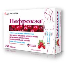 Состав: 1 таблетка НЕФРОКЭА/NEPHROCARE® содержит:  активные ингредиенты: экстракт ягод клюквы */** – 250 мг, кислота аскорбиновая (витамин C) (E300) – 90 мг (150% от рекомендуемого уровня суточного потребления), порошок семян сельдерея – 30 мг, порошок травы и листьев жерухи...