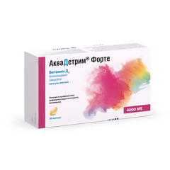 Торговое наименование АкваДетрим ®  Форте Международное непатентованное название Колекальциферол Лекарственная форма, дозировка Капсулы мягкие, 2000 МЕ Капсулы мягкие, 4000 МЕ Фармакотерапевтическая группа Пищеварительный тракт и обмен веществ. Витамины. Витамин А...